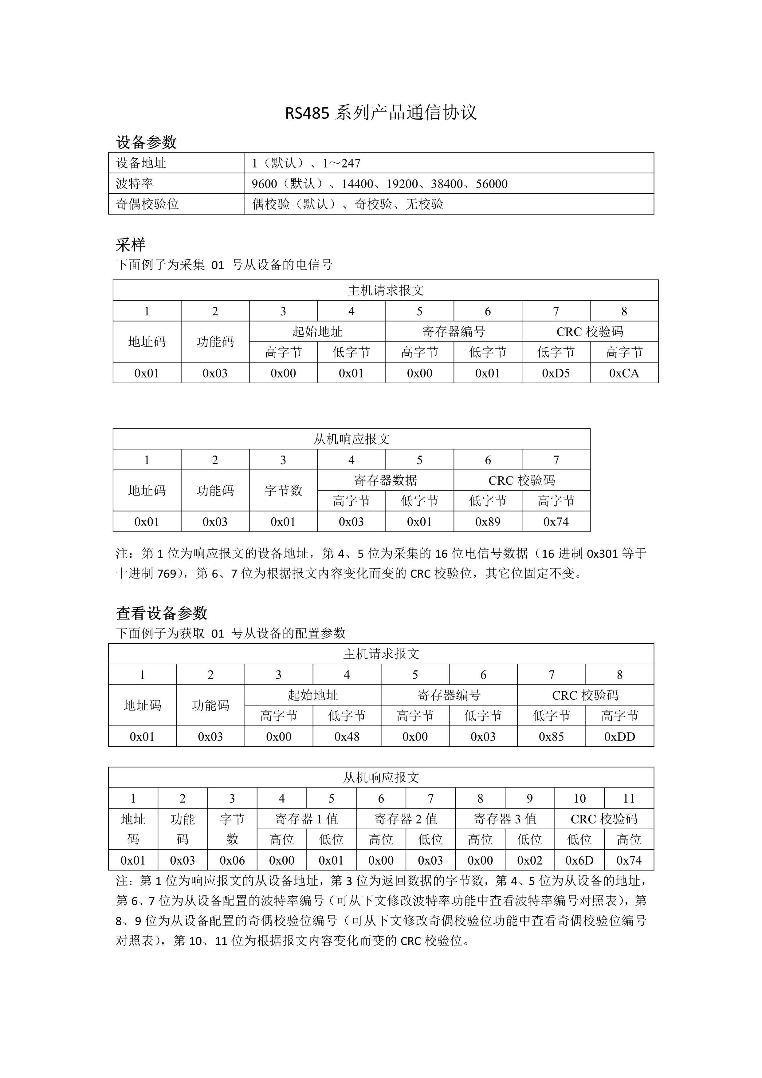 RS485系列产品通信协议