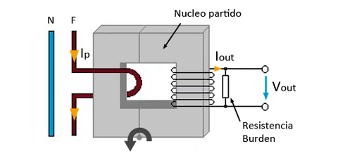 - 磁芯:钳形铁磁材料构成闭合磁路